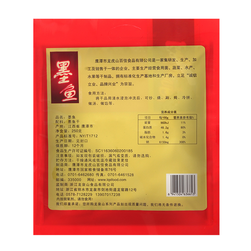 龙泉山舟山墨鱼干250g